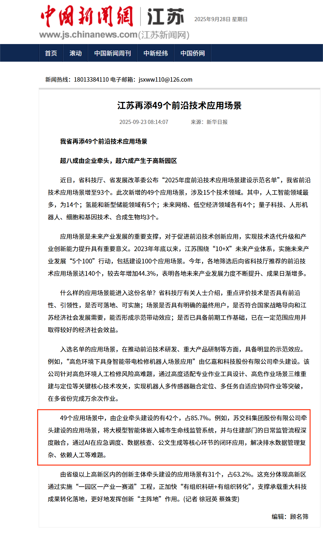 近日,省科技厅、省发展改革委公布“2025年度前沿技术应用场景建设示范名单”,我省前沿技术应用场景增至93个。此次新增的49个应用场景,涉及15个技术领域。其中,人工智能领域最多,为14个;氢能和新型储能领域有5个;未来网络、低空经济领域各有4个;量子科技、人形机器人、细胞和基因技术、合成生物均3个。 应用场景是未来产业发展的重要支撑,对于促进前...