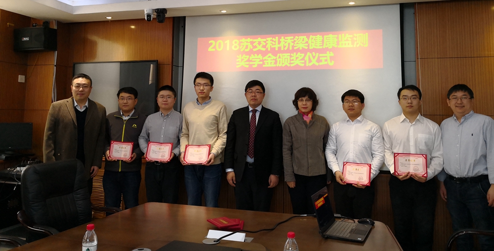 On March 9, Harbin Institute of Technology (HIT) held the ceremony to grant the “JSTI Bridge Health Monitoring and Inspection Scholarship”. Director Zhang Yufeng of the State Key Laboratory on Safety and Health of In-service Long-span Bridges of JSTI Group granted the Bridge Health Monitoring and Inspection Scholarship to two doctoral students and three master graduate students. Director of the International Association for Structural Control and Monitoring (IASCM), Prof. Li Hui and Prof. Bao Yuequan of the HIT School of Civil Engineering, also attended the grant ceremony among other experts.