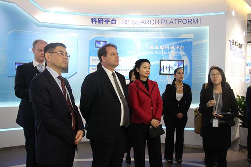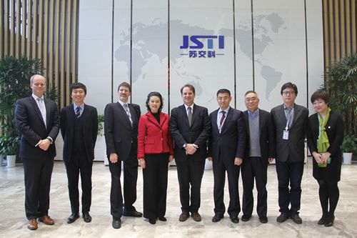 On January 19th, Consul General Sean Stein of the US Consulate in Shanghai visited JSTI Group to learn more about the company and to better understand opportunities for Sino-American business cooperation. Joining Consul General Stein was Deputy Director Zou Weike of Nanjing Municipal Bureau of Commerce, and Deputy District Mayor Yangwei of the People's Government of the Jianye District. JSTI Group Vice Chairman, Wang Junhua, General Manager Peng Tao of the Development Department and several other departmental heads led the visit.