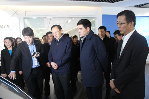 Mayor of Nanjing Miao Ruilin (second from left), Deputy Mayor Huang Lan (third from left) visited the exhibition room of JSTI Group