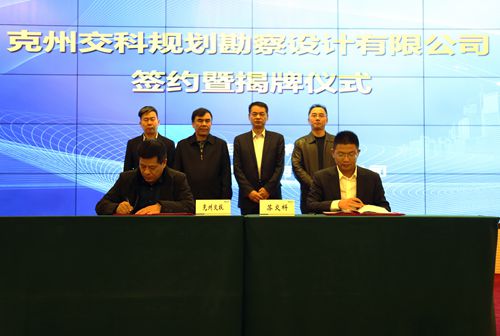 Recently, JSTI Xinjiang Kezhou Planning, Survey and Design Co., Ltd., whose holding company was JSTI Group, was established with an unveiling ceremony. Vice Governor of the Kezhou People's Government Abudureheman Aili, Director of Kezhou Transportation Bureau Wangbin, Member of Party Committee, Deputy Investigator of Kezhou Transportation Bureau, and Chairman of the Board of Transportation Construction Investment Co., Ltd. Peng Zhongqiang, JSTI Regional Vice President Zhaojie, Marketing Director of Xinjiang and Gansu Li Xuejun, Director of the Xinjiang Branch of the JSTI Transportation Planning & Design Institute Li Huawei, et. al. attended the unveiling ceremony.
