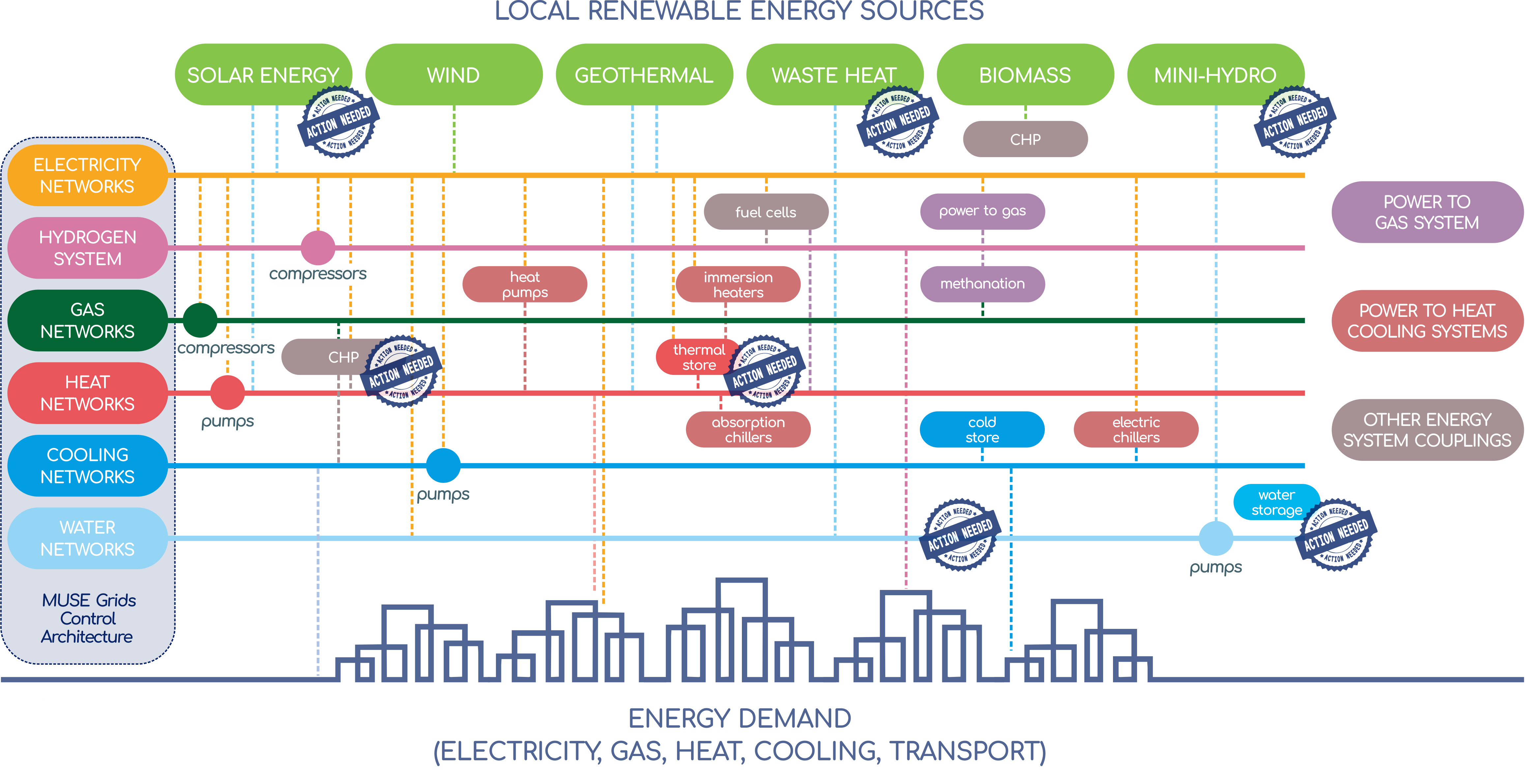 MUSE GRIDS project aims to develop new models and tools to coordinate interactions between different energy systems and networks (the so-called Smart Energy Systems), promoting the optimized management of Local Energy Communities, demand-side management (DSM) and increasing the share of renewable energies in the global energy mix.