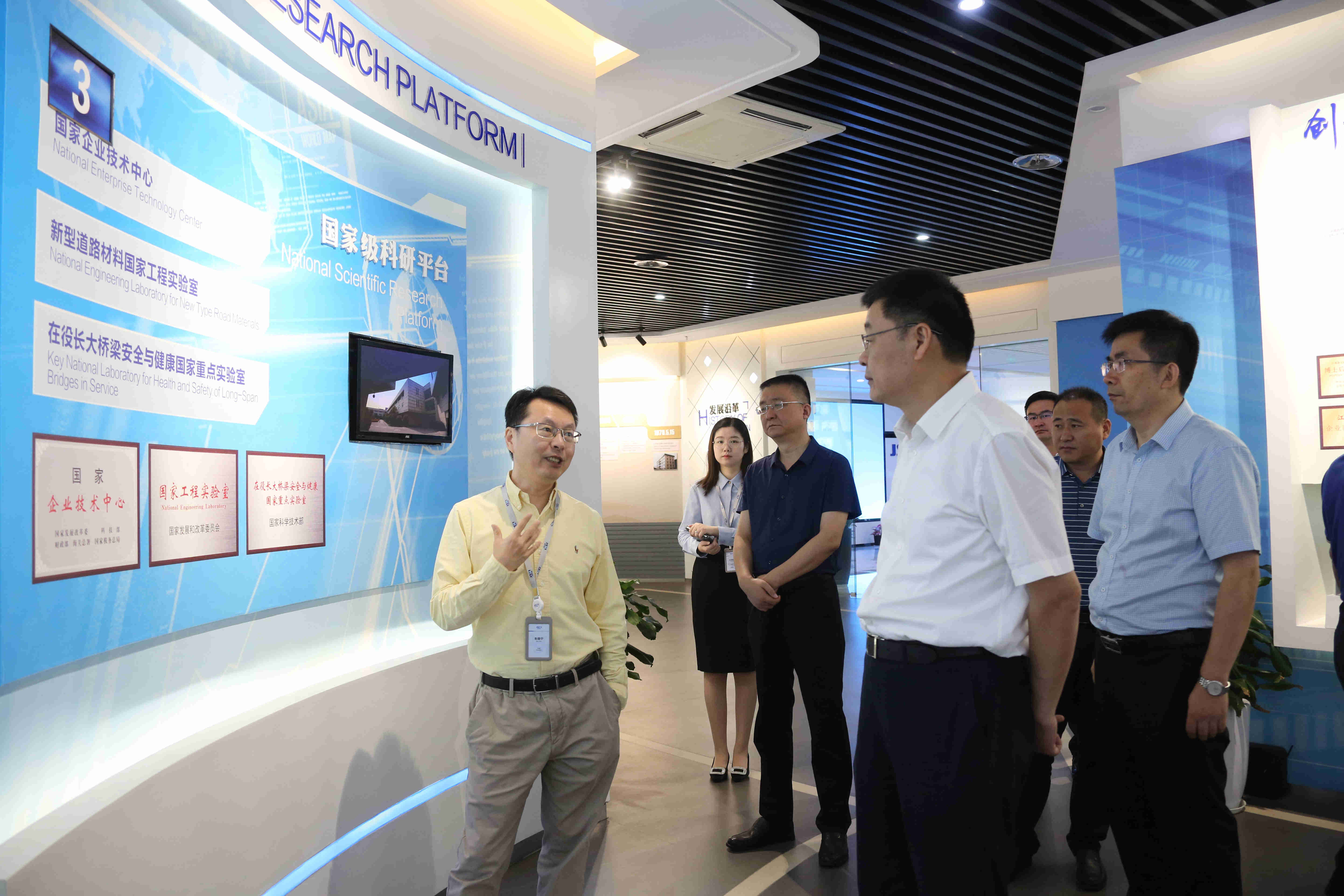 7月9日,总裁朱晓宁、副总裁何兴华等在南京设计中心接待了徐州市交通控股集团有限公司党委书记、董事长贾泉涌一行。双方围绕智慧交通、新基建、道路新材料、资本运作等展开深入交流。 ▲ 参观企业文化展厅 ▲双方开展座谈交流 ▲徐州市交通控股集团有限公司党委书记、董事长贾泉涌发言 贾泉涌董事长结合徐州市交通控股集团有限公司总体情况,介绍工...