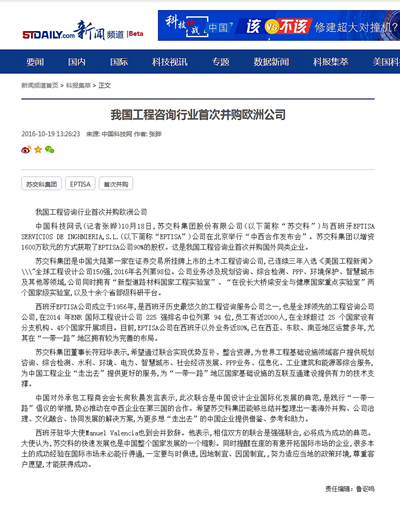 【转载】我国工程咨询行业首次并购欧洲公司——中国科技网于2016年10月19日刊出