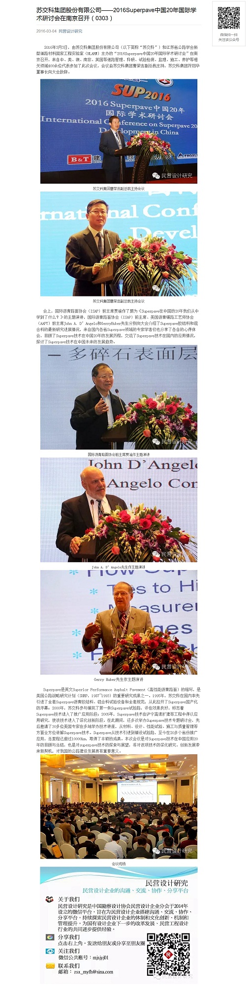 【媒体报道】bevictor伟德——2016Superpave中国20年国际学术研讨会在南京召开(民营设计研究微信于2016年3月4日刊出)
