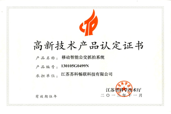 我公司“移动智能公交抓拍系统”被认定为江苏省高新技术产品