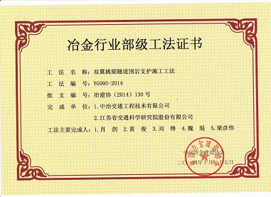 bevictor伟德 “双翼挑梁隧道围岩支护施工工法”获省部级工法