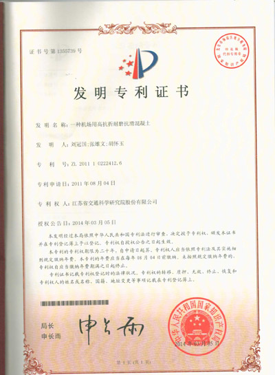 近日,由我公司自主研发的“一种机场用高抗折耐磨抗滑混凝土”及“波形钢板与混凝土的抗剪连接件”通过国家伟德bv国际局审查,被授予发明专利证书,截止目前,已获得授权专利108项。  “机场用高抗折耐磨抗滑混凝土”是我公司研发的一种土木工程领域混凝土材料的新配方,可完善机场道面的使用性能,提高安全性,减少经济损失。近年来,由于设计施工不当、维护不到位,加...
