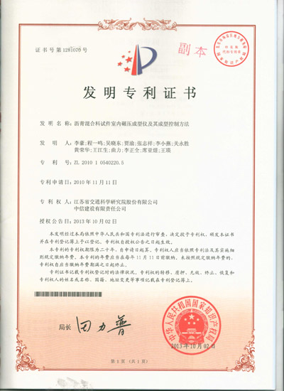 日前,由我公司自主研发的“沥青混合料试件室内碾压成型仪及其成型控制方法”通过国家伟德bv国际局审查,被授予国家发明专利证书。  沥青混合料试件室内碾压成型仪是一种能够较好模拟沥青路面现场施工实况的车辙模拟试验设备。该设备能够较好地模拟汽车荷载的作用效果,从而经济、迅速地预估和评价沥青混合料的抗车辙性能。  沥青混合料试件室内碾压成型仪改变了传统车辙...