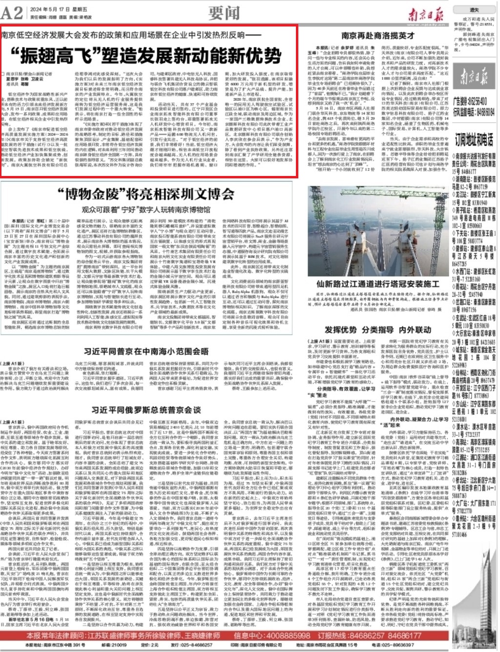【媒体报道】南京低空经济发展大会发布的政策和应用场景在企业中引发热烈反响——“振翅高飞”塑造发展新动能新优势