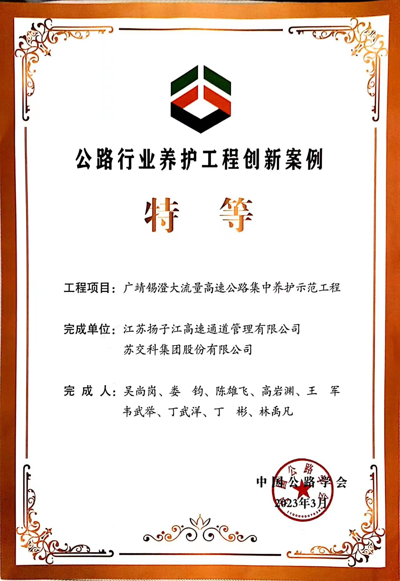 喜报 | 集团参与设计及后期服务的“广靖锡澄大流量高速公路集中养护示范工程”荣获公路行业养护工程创新案例特等奖