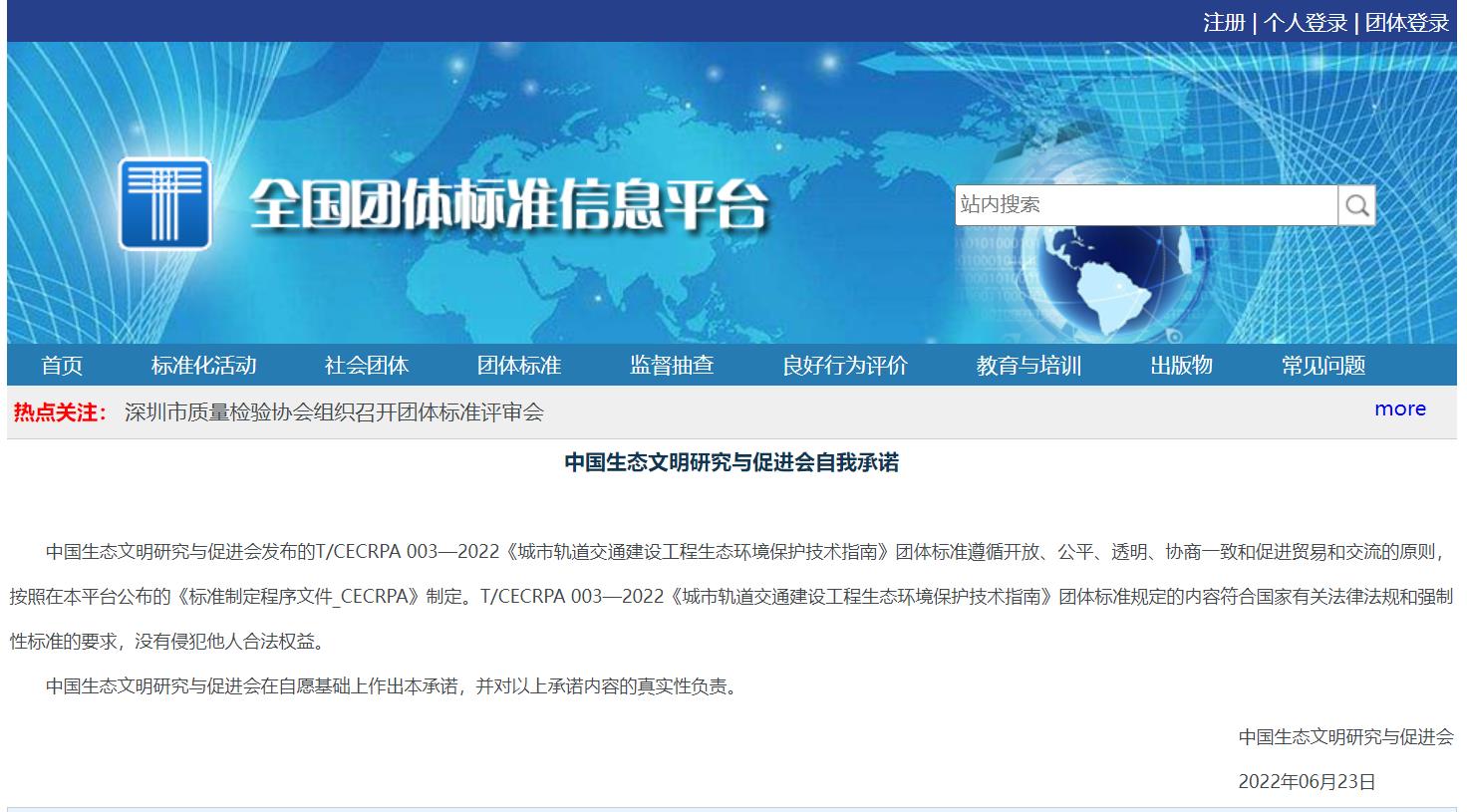 bevictor伟德 | 集团参与编制的《城市轨道交通建设工程生态环境保护技术指南》作为中国生态文明研究与促进会首批团体标准正式对外发布