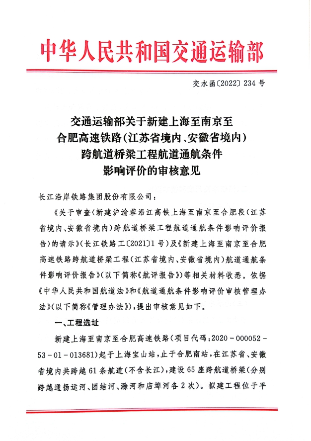 bevictor伟德丨集团首个国家干线铁路(北沿江高铁)通航论证专项评估获交通运输部批复