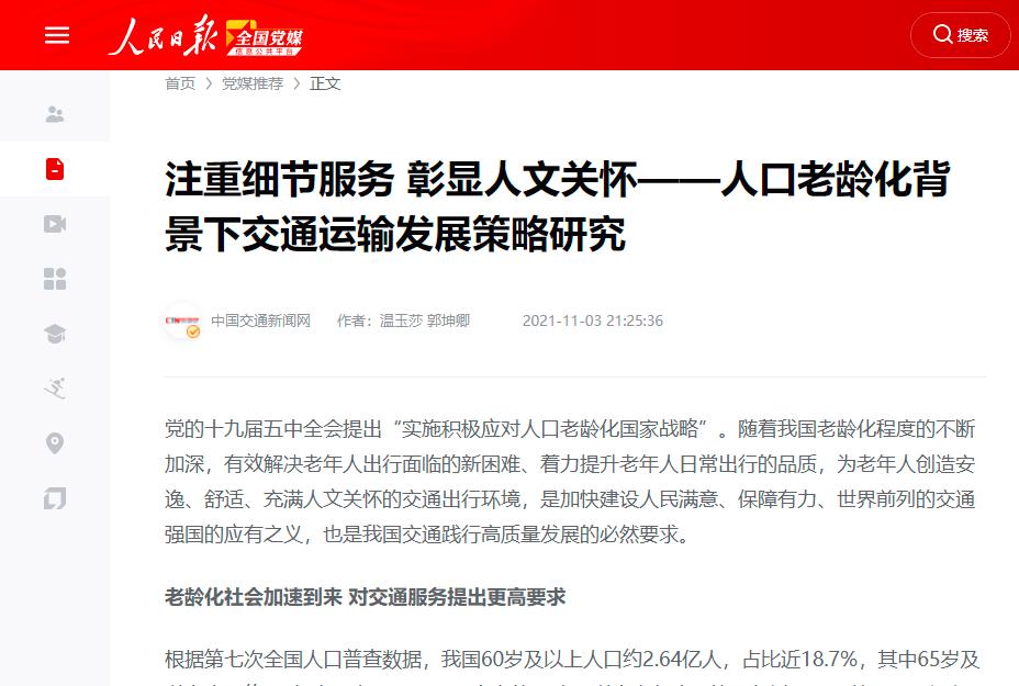 bevictor伟德丨《人口老龄化背景下交通运输发展策略研究》智库建言于人民日报刊登