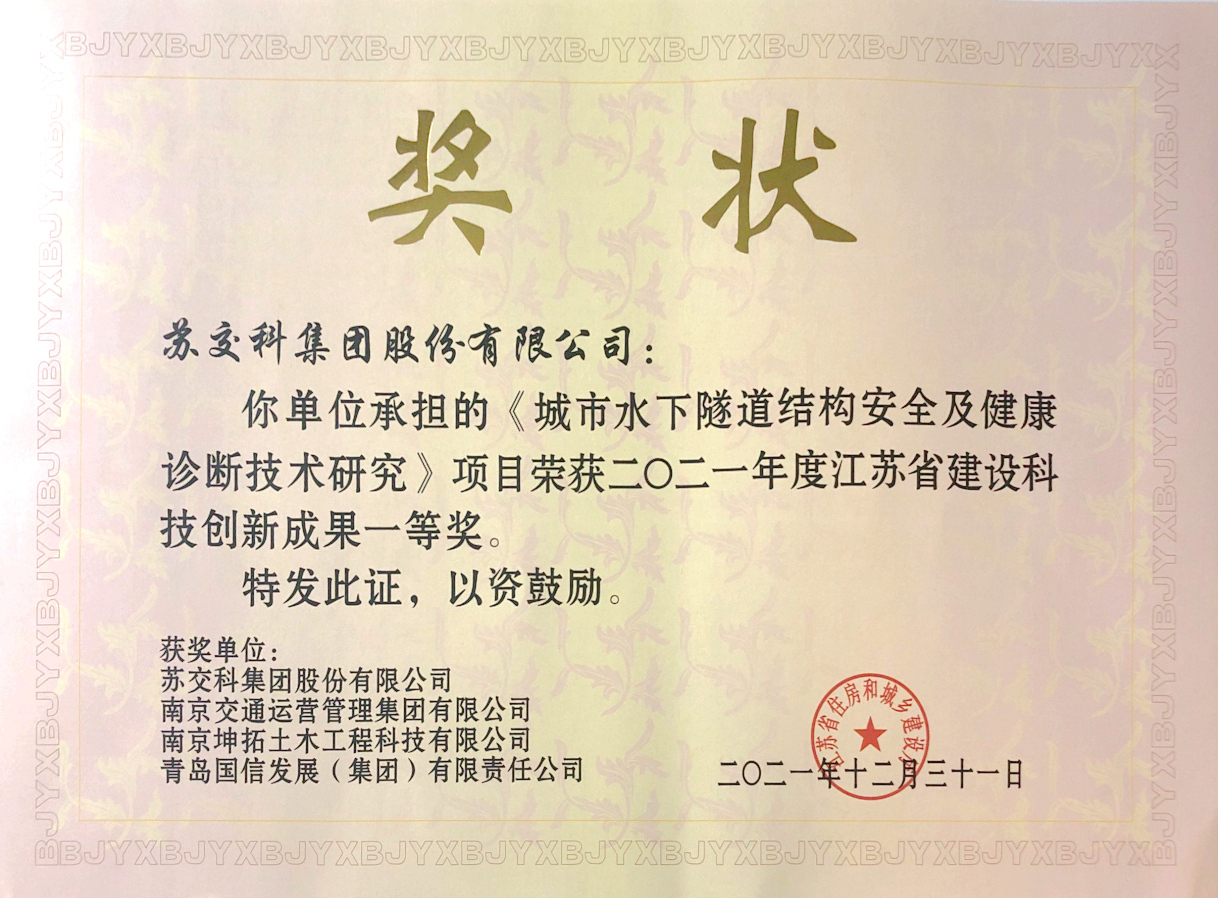 近日,江苏省住房和城乡建设厅公布了2021年度江苏省建设伟德国际1946成果名单,共计选出一等奖4项、二等奖9项、三等奖13项。bevictor伟德集团牵头开展的《城市水下隧道结构安全及健康诊断技术研究》荣获一等奖。 江苏省建设伟德国际1946成果是江苏省住建领域创新应用方面的最高奖项,每年度评选一次。获奖成果均在技术上有重要创新,解决了行业发展中的热点、难点和关键问...