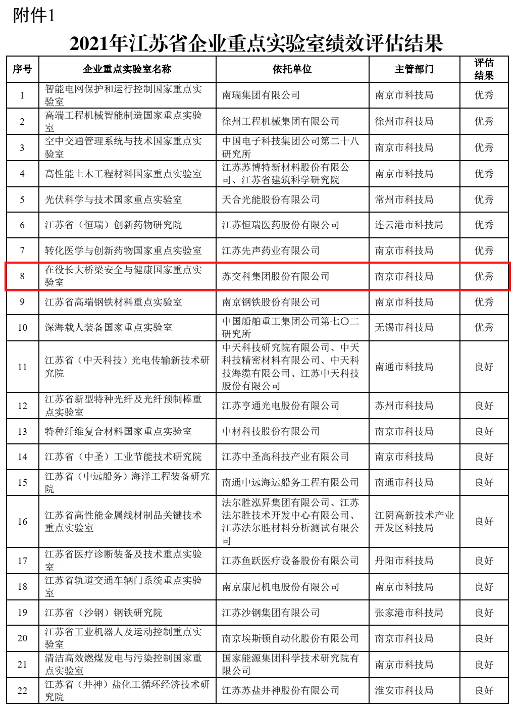 11月2日,江苏省科学技术厅发布“2021年度省企业重点实验室和科技公共服务平台绩效评估结果”,在役长大桥梁安全与健康国家重点实验室获评“优秀”。 在役长大桥梁安全与健康国家重点实验室于2015年10月正式获批。近5年,实验室以保障桥梁安全与耐久为重点,针对中国桥梁平均寿命短、安全事故频发、...