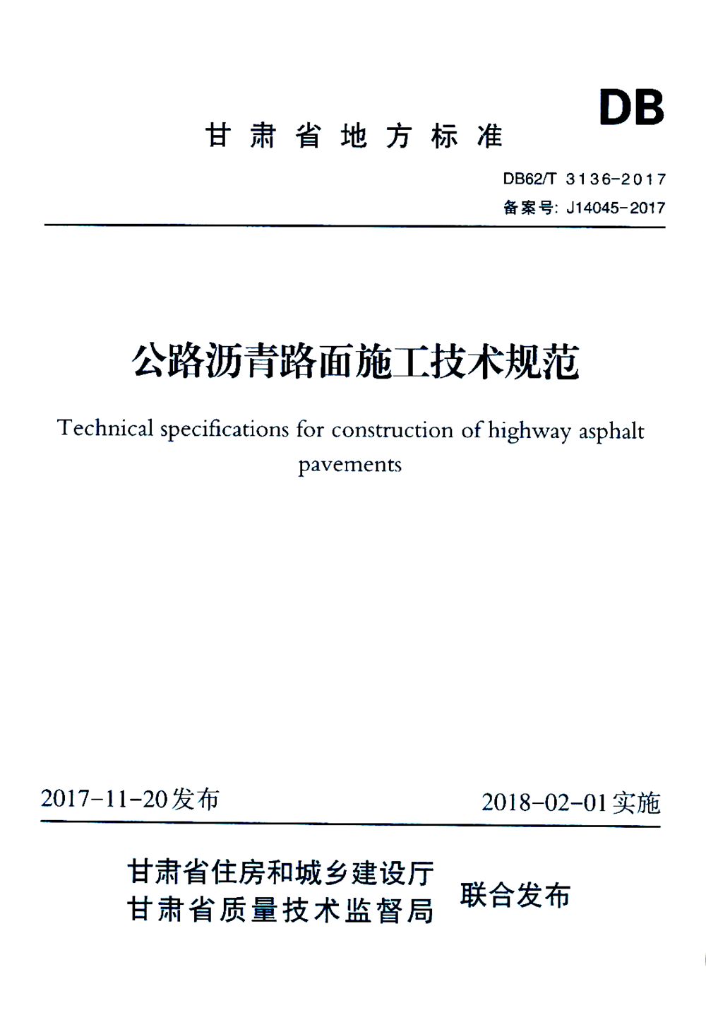 日前,由甘肃省交通工程质量安全监督管理局主编,bevictor伟德集团等单位参编的甘肃省地方标准《公路沥青路面施工技术规范》(DB62/T 3136—2017)(以下简称“规范”),经甘肃省住房和城乡建设厅、甘肃省质量技术监督局批准已正式实施。