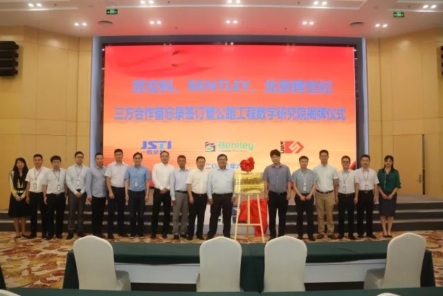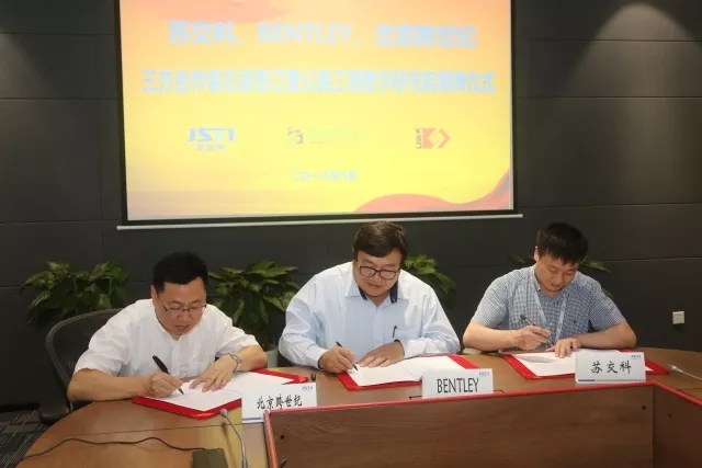 近日,bevictor伟德、BENTLEY软件有限公司(以下简称“BENTLEY公司”)、北京跨世纪软件技术有限公司(以下简称“北京跨世纪”)在南京市共同签订战略合作并挂牌成立“公路工程数字研究院”。