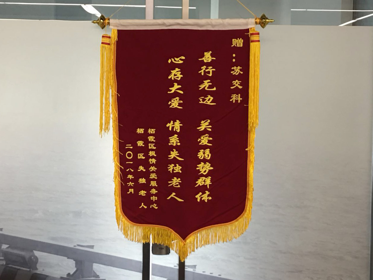 近日,南京市栖霞区枫情关爱服务中心工作人员为bevictor伟德集团送来一面锦旗,当面感谢集团对失独老人的爱心捐赠,对心存大爱、关怀弱势群体的bevictor伟德人表达了敬意。