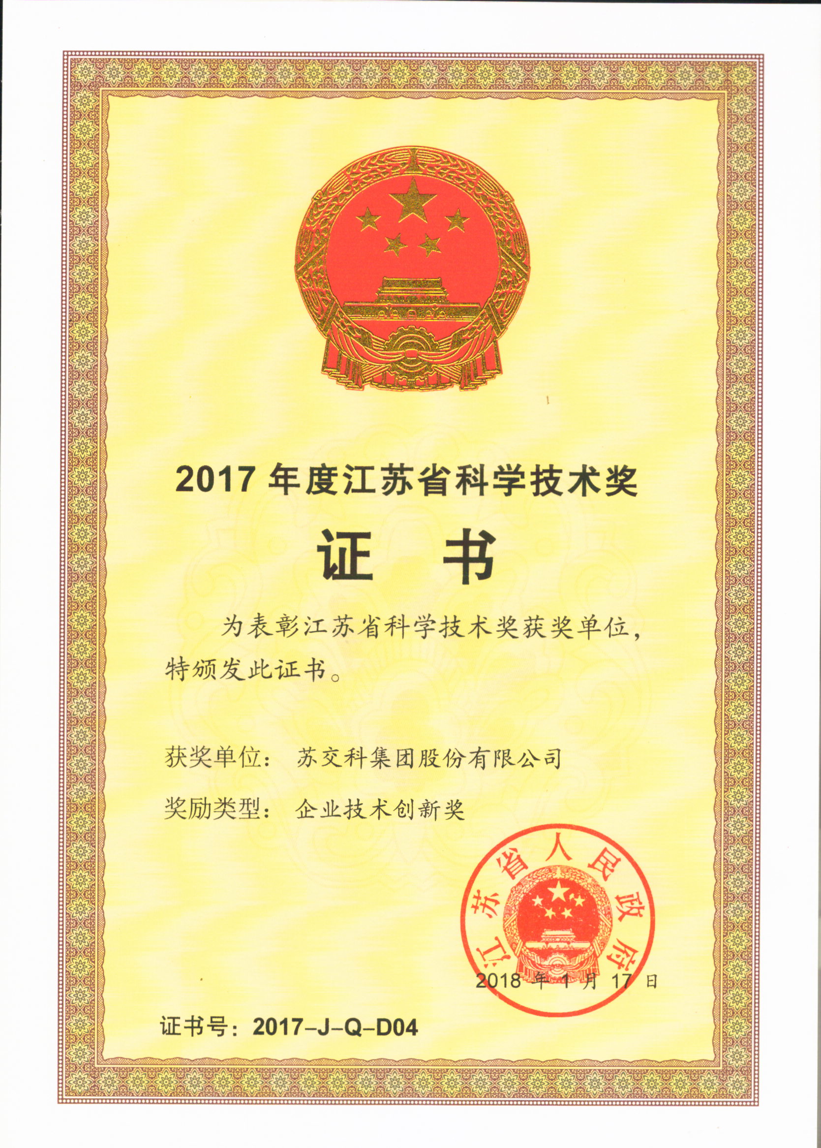 “江苏省企业技术创新奖”由江苏省科学技术厅认定,江苏省人民政府颁发,旨在培育一批技术创新能力强、创新绩效好、具有高成长性的领军企业。