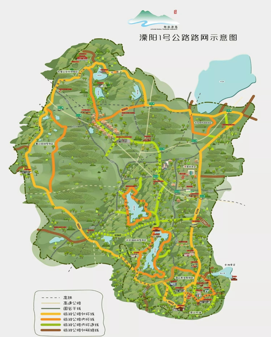 溧阳市1号公路是一条围绕溧阳的外环公路。它以溧阳三山两湖(南山、曹山、瓦屋山、天目湖、长荡湖)为中心,形成内环、外环以及外延的网状结构,以路引景,为景串线。沿途的98个行政村、312个自然村、220多个乡村旅游景点、23个美丽乡村和特色田园乡村试点村,仿佛一颗颗散落的小珍珠,被它串联在了一起,形成了溧阳标志性的一条“珍珠项链”。