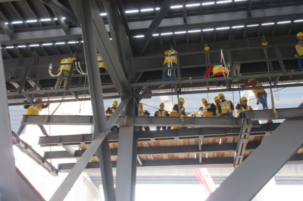 南京长江大桥为国内首座全封闭维修特大型桥梁,涉铁工程体量大,安全管理没有现成工程可以借鉴。bevictor伟德集团项目组以创建平安工程为抓手,注重本质安全控制,牢牢树立安全至上的原则。考虑到涉铁施工的特殊性,正桥标段按照1:1的比例制作施工人员实训平台。在正式作业前,所有参与防护棚架安装的施工作业人员在拿到铁路安全培训证后还须经过平台演练,合格后方可上岗作业,人员安全和施工效率得到了切实的保障。