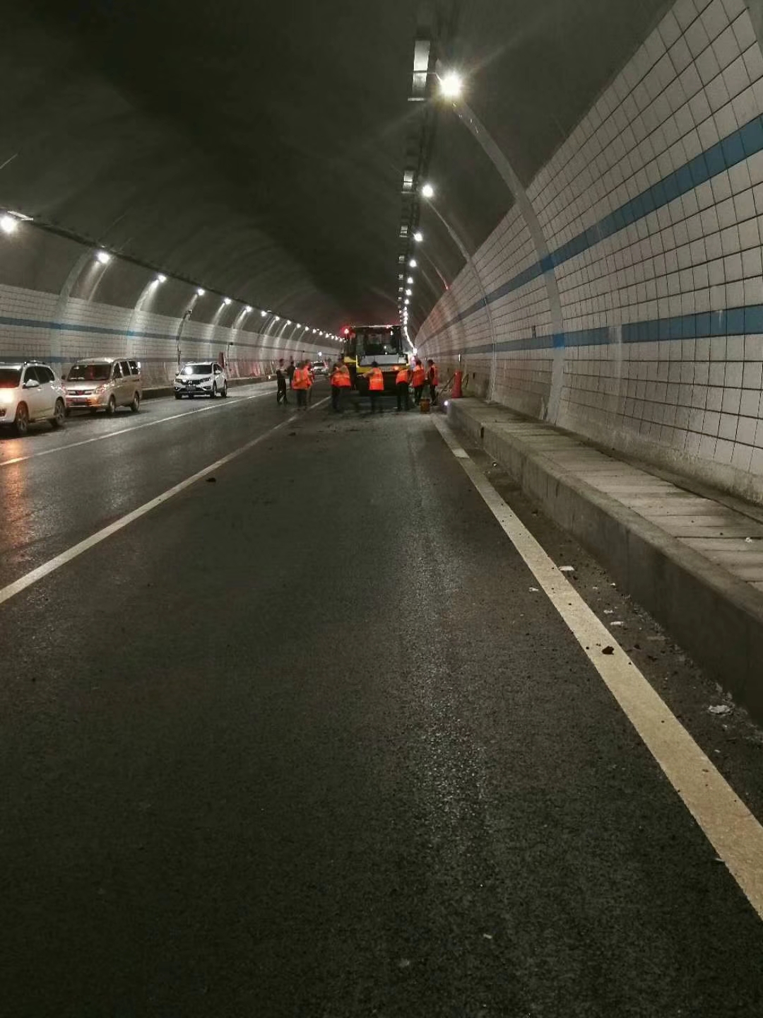 项目组成员坚守岗位,在施工现场勘察大石头隧道,严把工程质量关。