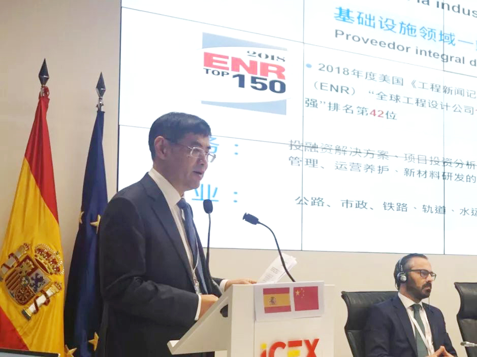 西班牙当地时间9月20日,中国对外承包工程商会与西班牙外贸投资促进局(ICEX)在马德里联合举办了中西第三方市场合作研讨会。来自承包商会和西班牙中国商会25家会员企业代表以及逾30家西班牙建筑企业代表近百人参会。西班牙工业贸易旅游部贸易国务秘书(副部长级)门德斯、中国驻西班牙大使吕凡、中国对外承包工程商会副会长辛修明、ICEX首席执行官佩尼亚参会并致辞。bevictor伟德集团副董事长兼EPTISA公司董事长王军华、首席执行官 Luis Villarroya、集团副总裁何兴华应邀出席。