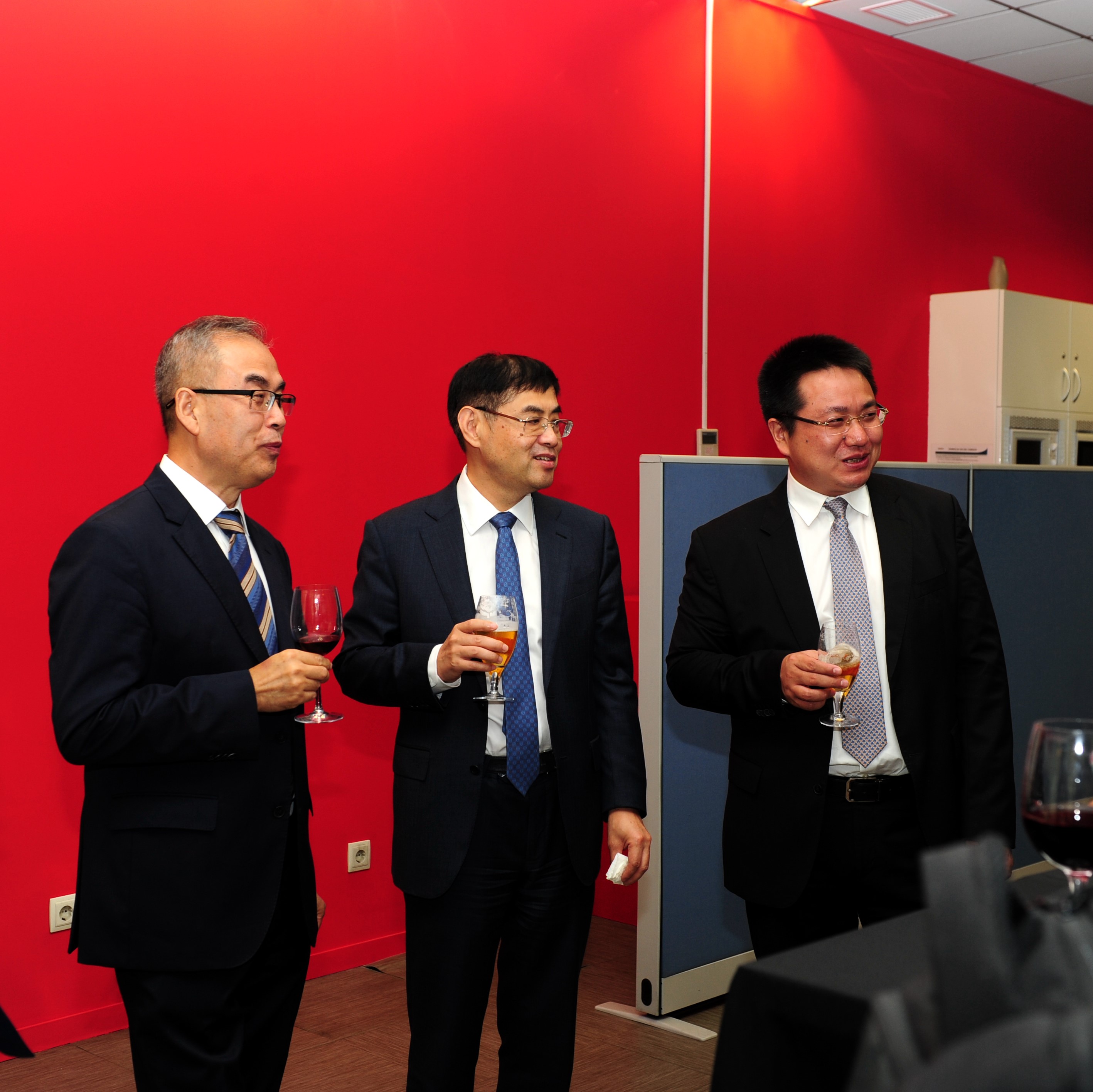 王军华副董事长、何兴华副总裁与中国对外承包工程商会副会长辛修明(左一)交流
