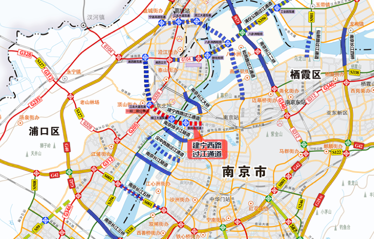 建宁西路过江通道一期工程起自江北大道,止于南岸热河南路,主线工程全长约6801m,其中隧道段长3550m,桥梁段长2915m,路基段长336m,并包含江北大道互通、横江大道地下互通、惠民路地下互通(部分)及与本通道相关的地面道路,总投资约120亿元。项目的建设将有效缓解过江交通压力,对推动南京拥江、跨江发展,实现江北新区跨越式发展,加快建设“强富美高”新南京具有重要意义。