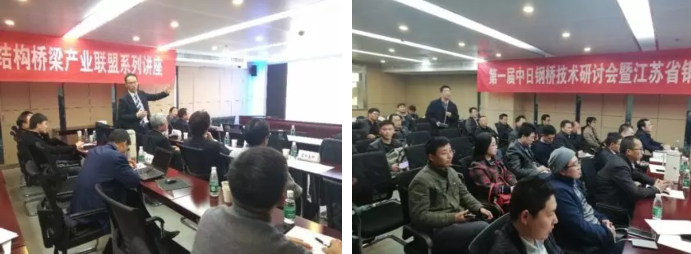 会上,日本三菱重工铁构株式会社(现MMB)董事兼生产技术部部长上平悟、工程管理室室长铃木俊光、生产技术部主管本山潤一郎,名古屋高速道路协会养护部主管田端宜昌、吉田直树,阪神高速道路技研株式会社上海办事处总经理石井康裕分别围绕日本钢桥产业现状、标准化设计、制造和施工质量控制,运营养护等作了专题报告。