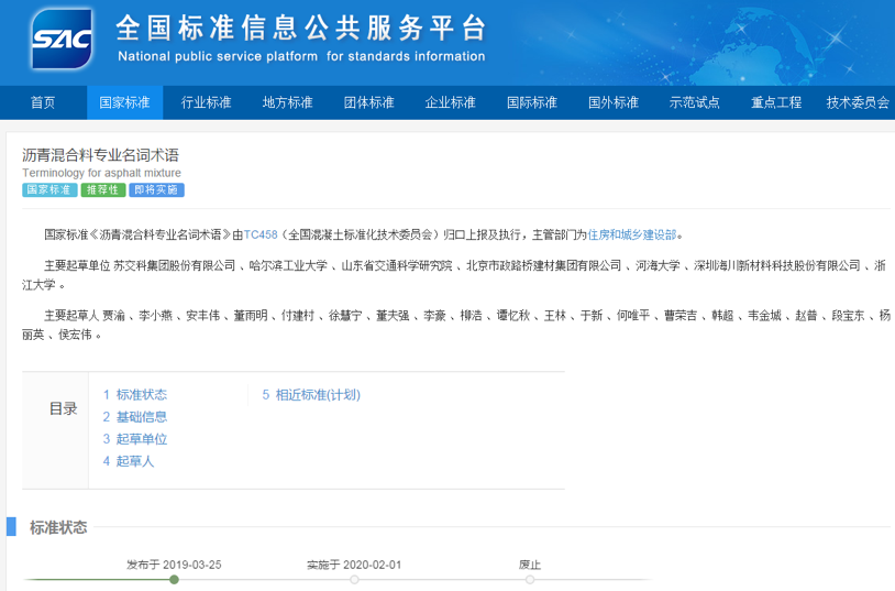 近日,由bevictor伟德集团主编的两项国家标准分别予以发布和实施,其中《沥青混合料专业名词术语》(GB/T 37383-2019)于2019年3月25日正式发布;《道路用高模量抗疲劳沥青混合料》(GB/T 36143-2018)于2019年4月1日起正式实施(2018年5月14日发布)。