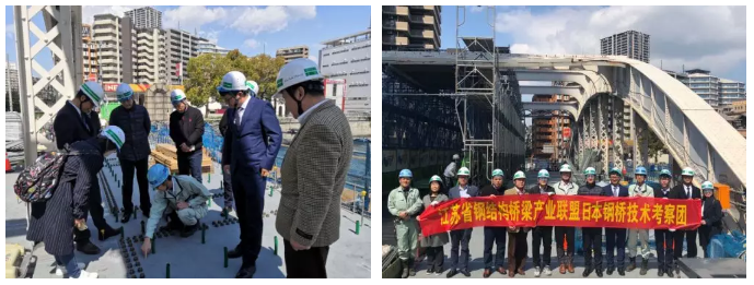 ▲ 考察大阪堂岛大桥(钢桁架百年老桥、维修加固工程)施工现场