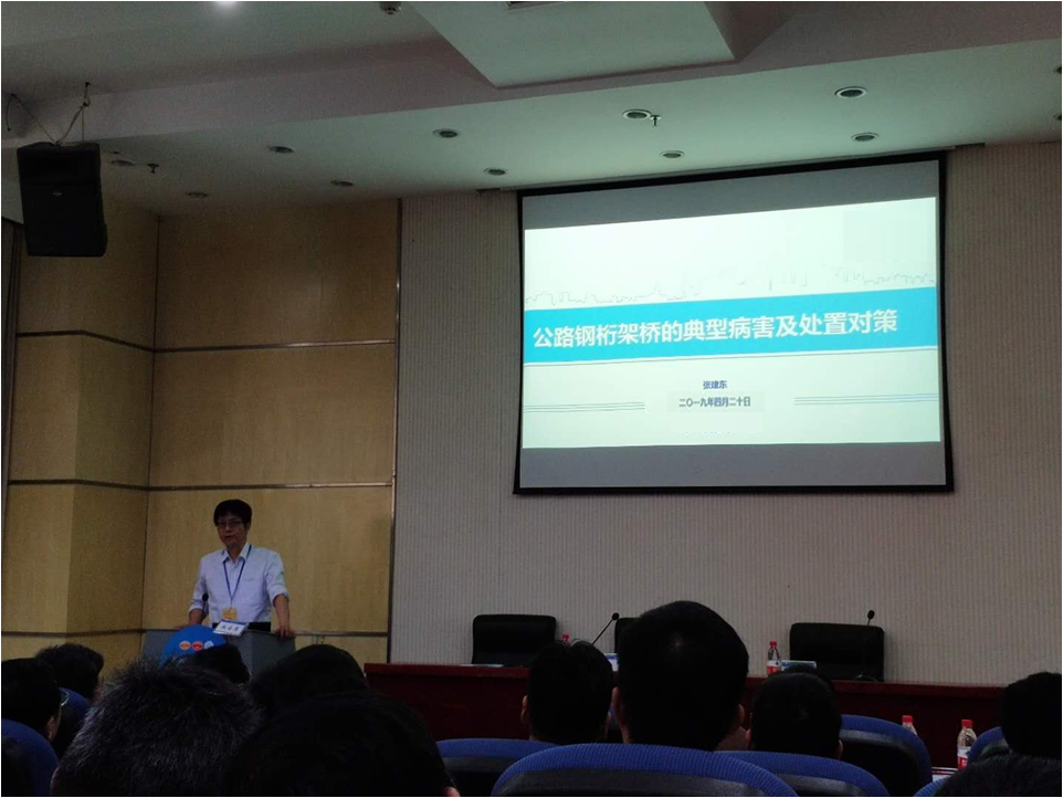 张建东以“公路钢桁架桥的典型病害及处置对策”为主题作学术报告,主要介绍了公路钢桁架桥的高强螺栓脱落、防腐涂层劣化等典型病害的成因,并重点针对高强螺栓的断裂、松动机理以及处置对策进行了分析。