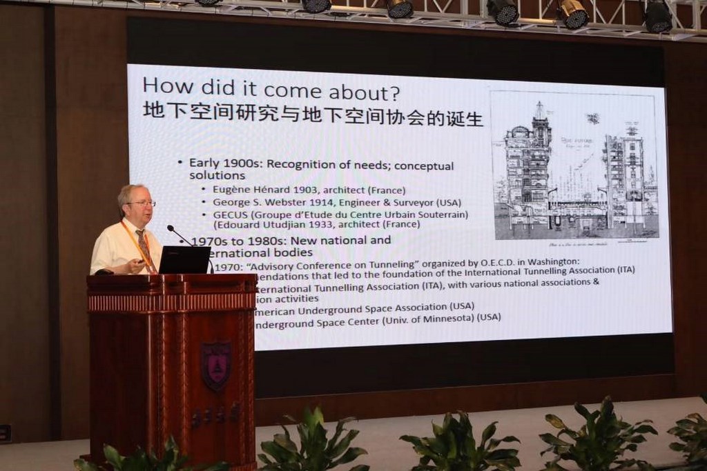 ▲ Raymond Sterling教授作《地下空间协同发展:从东京宣言到武汉宣言》主旨报告