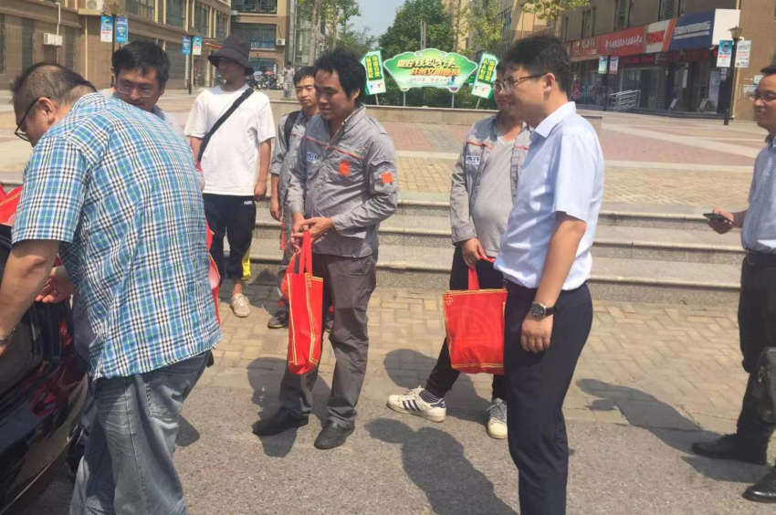 ▲ 慰问组向一线员工发放慰问品