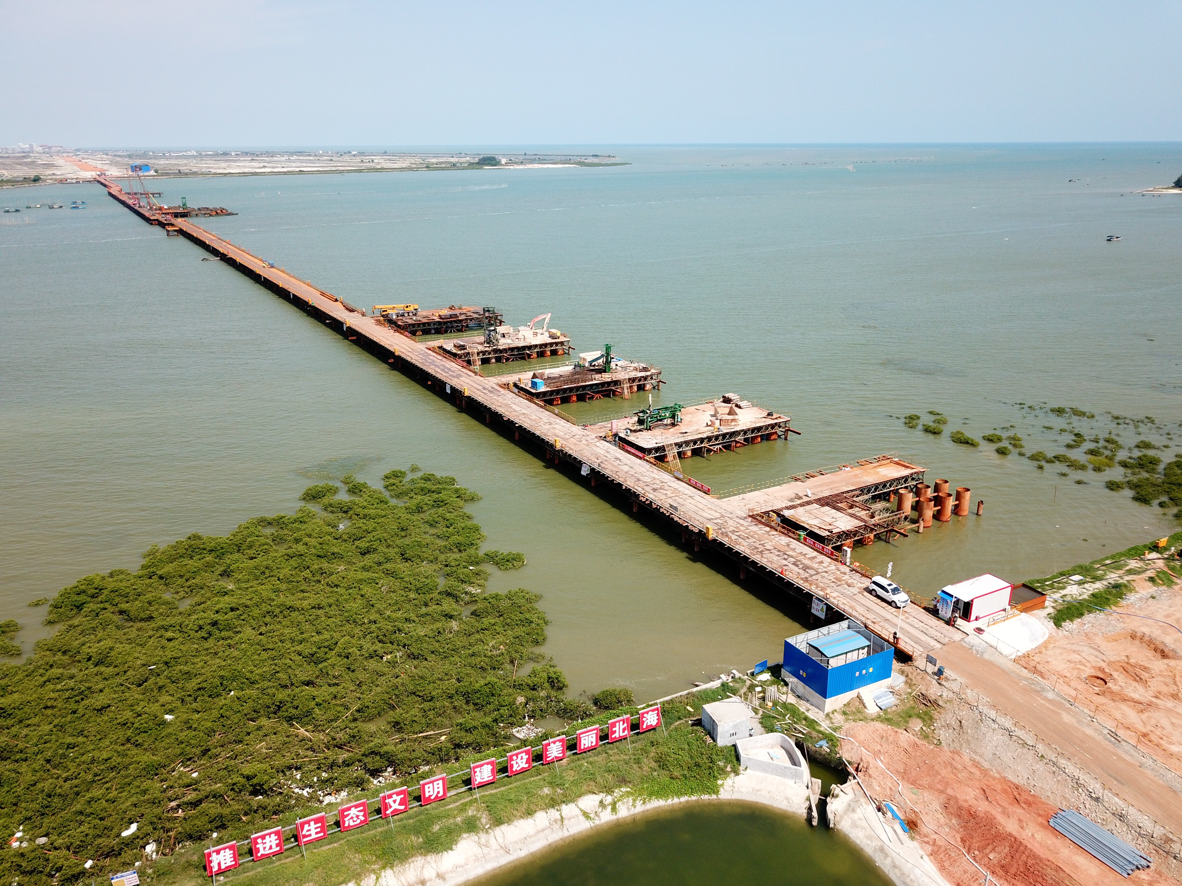 ▲ 北海西村港跨海大桥工程钢栈桥顺利合龙