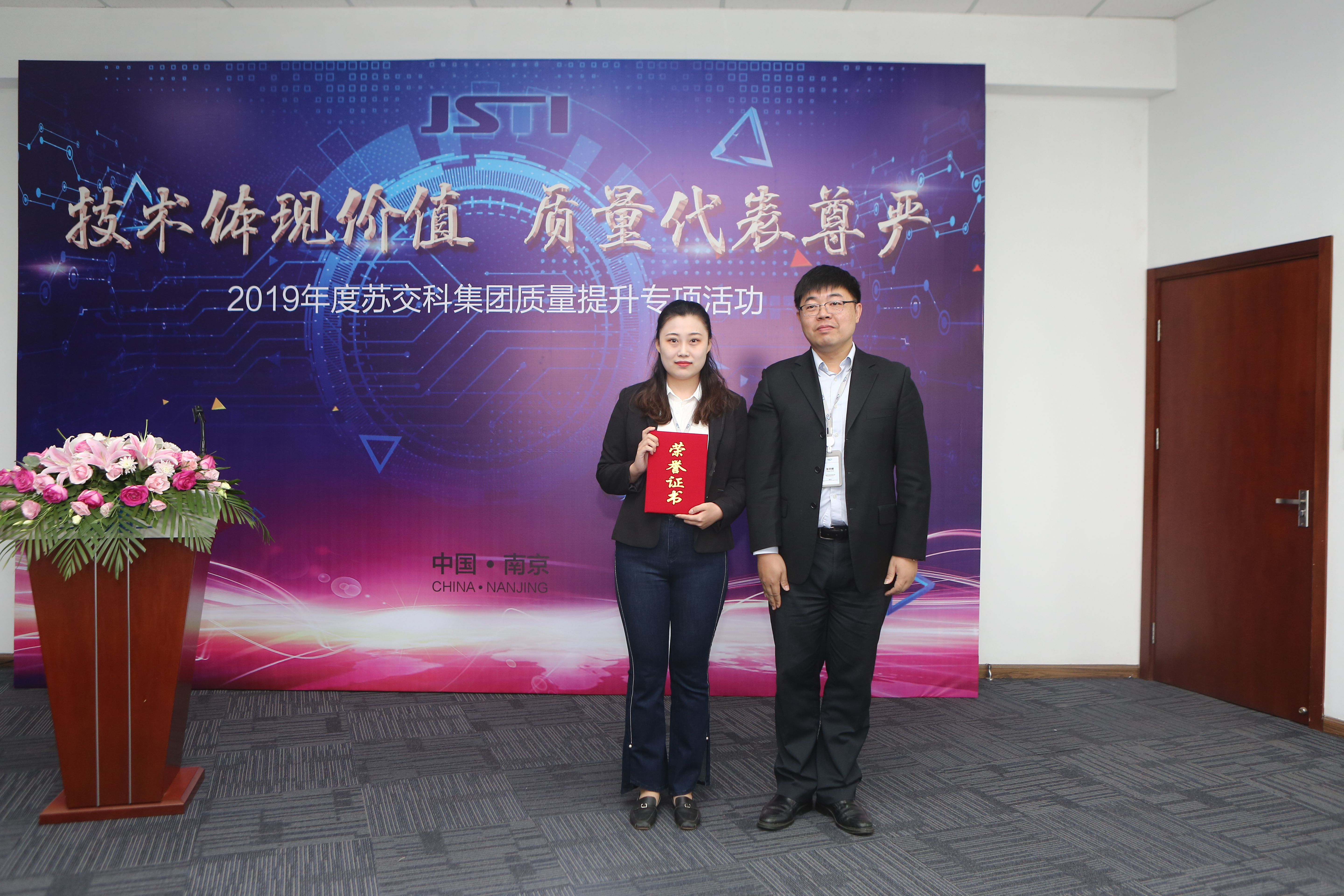 ▲ 交科院副院长张宇峰为试验检测知识竞赛一等奖获得者桥梁所史语诺颁奖