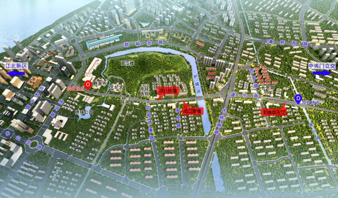 该项目的建设有利于充分发挥建宁西路过江通道的功能,分流长江大桥及扬子江隧道交通,便捷城西北地区过江,避免城西干道大桥南路节点拥堵。