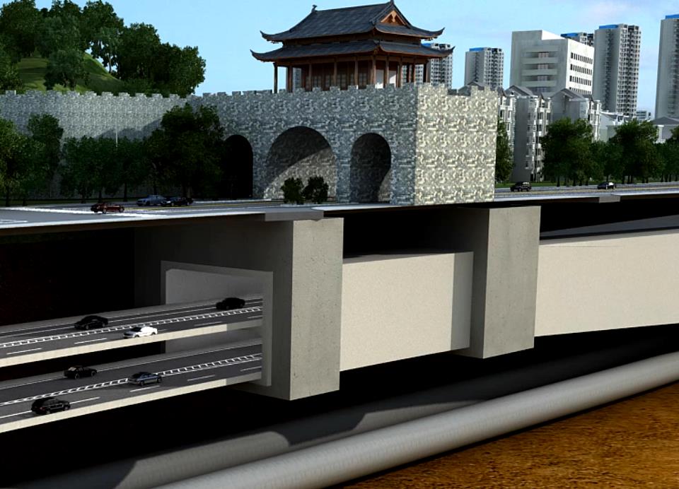 该工程建设条件复杂,下穿南京城墙仪凤门段及南京城墙狮子山-新民门段两处国家级保护文物,文物保护要求高,社会影响大。设计过程中,项目组开展了专项研究,积极与相关单位对接,并多次召开专家咨询会,确定采用管幕结构法下穿城墙仪凤门段、大直径顶管法长距离穿越城墙狮子山-新民门段及护城河,大大减小了工程建设对于文物的影响,获得了文物主管部门认可。