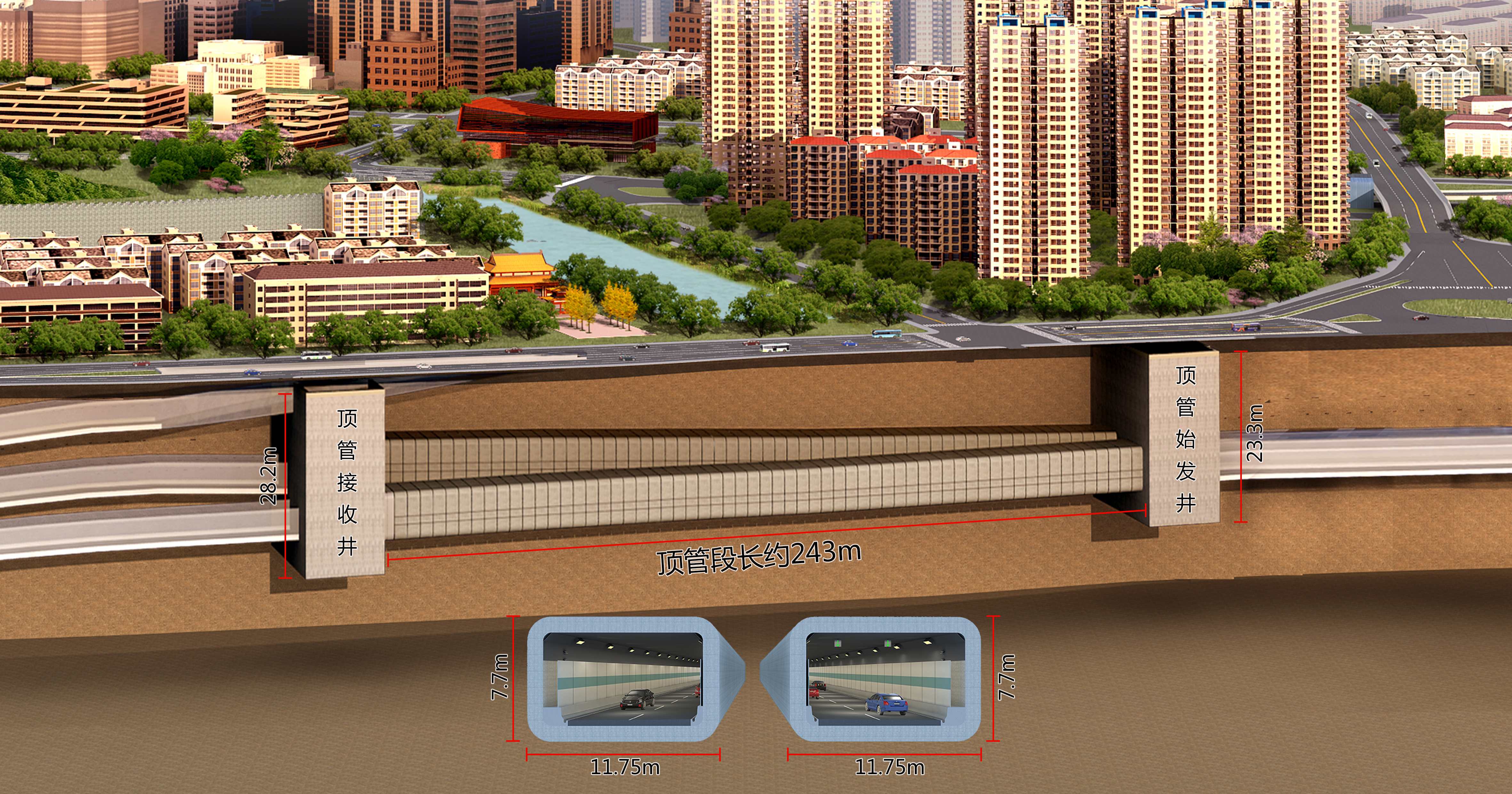 ▲ 大直径顶管法长距离穿越城墙狮子山-新民门段及护城河