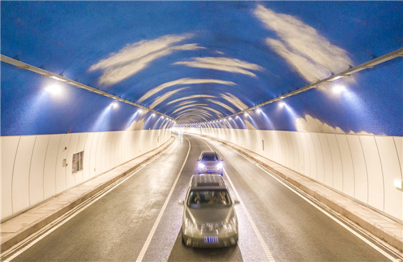 项目设计过程充分吸取了bevictor伟德集团主导编制的《江苏省城市隧道建设指南》、《城市隧道照明设计标准》、《城市隧道噪声控制技术规程》中的相关成果,将其建成了一个内实外美、安全经济、人文生态的景观大道。与往常隧道里黑压压的顶部不同,龙洲湾隧道内饰装修首次采用吸音降噪装饰板+拱顶蓝天白云装饰,在隧道内强光的照射下,该设计会让司机有在室外开车的感觉,增添隧道“颜值”同时,也能有效缓解驾驶员视觉疲劳。