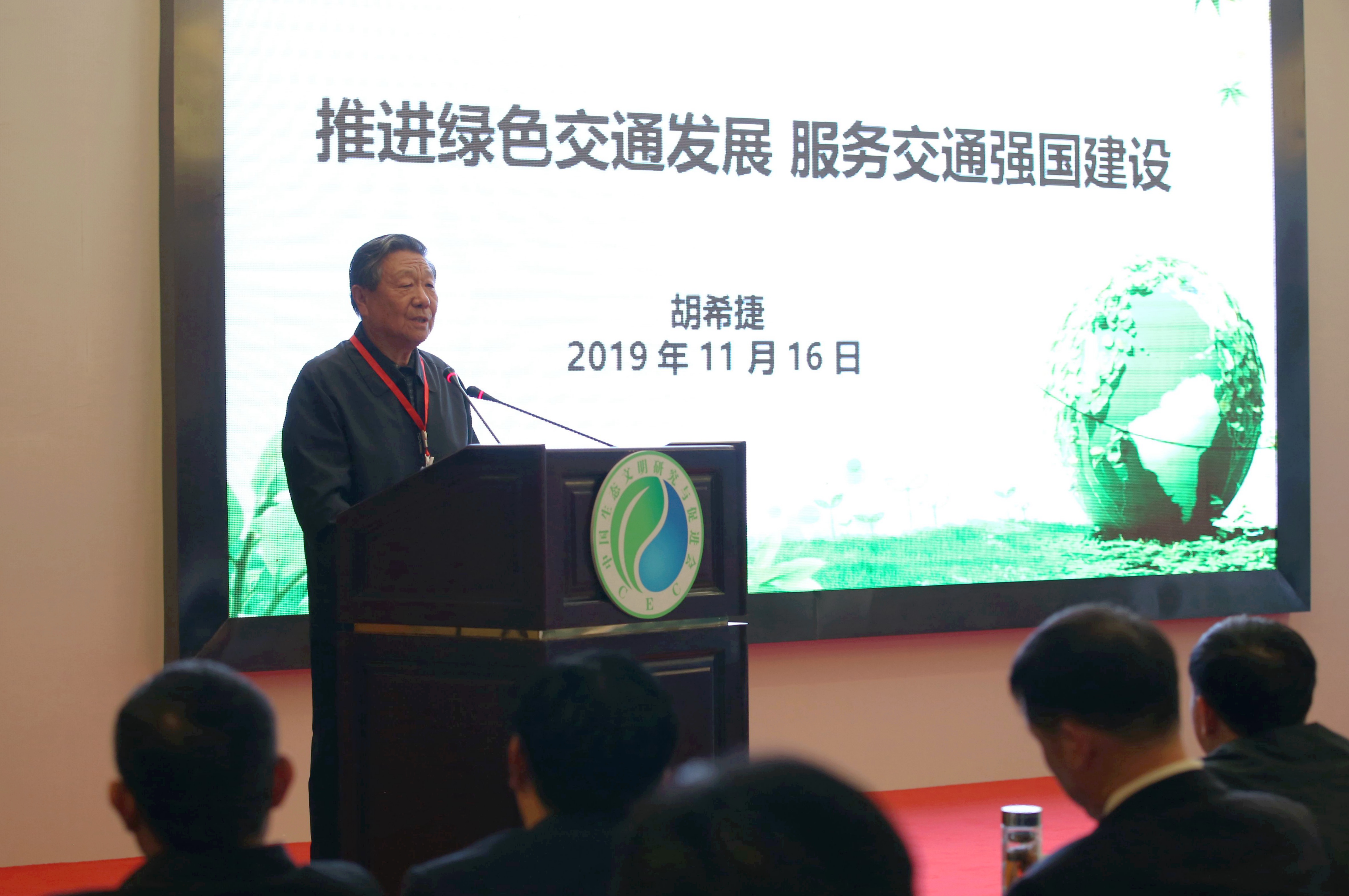 ▲ 研促会绿色交通分会首席专家、原交通部副部长胡希捷发言
