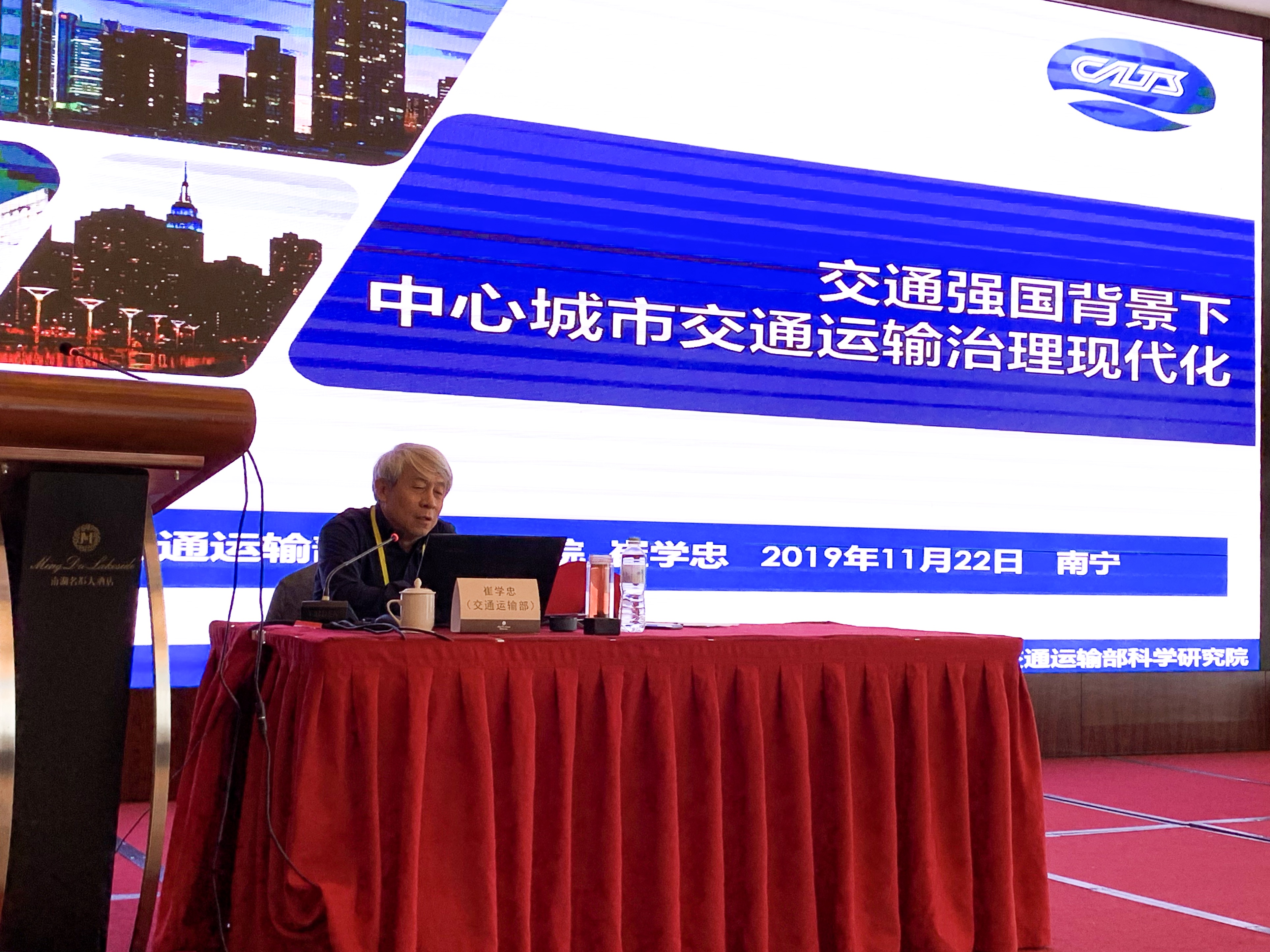 ▲ 交通运输部科学研究院副院长崔学忠作《交通强国背景下中心城市交通运输治理现代化》主题演讲