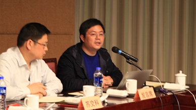 ▲ 集团交科院道路所副所长卢勇代表建设单位作绿色公路技术交流