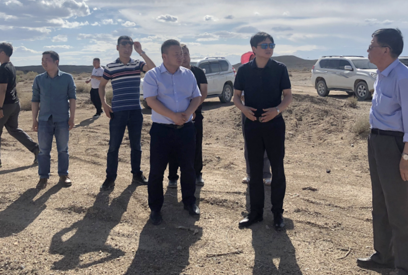 ▲ 新疆维吾尔自治区交通建设管理局副局长杨金智(右二)检查项目环水保情况