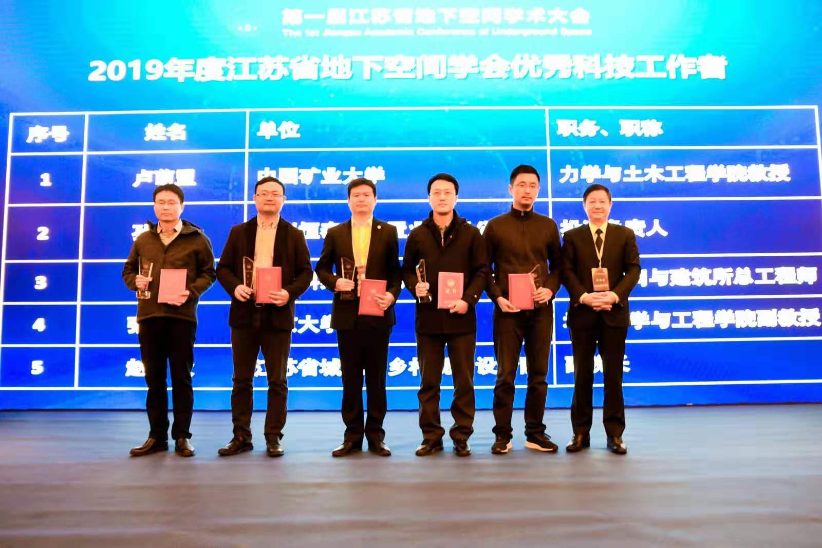 ▲bevictor伟德集团交规院地下空间与建筑所总工程师张忠宇(左三)获“2019年度江苏省地下空间学会优秀科技工作者”荣誉称号