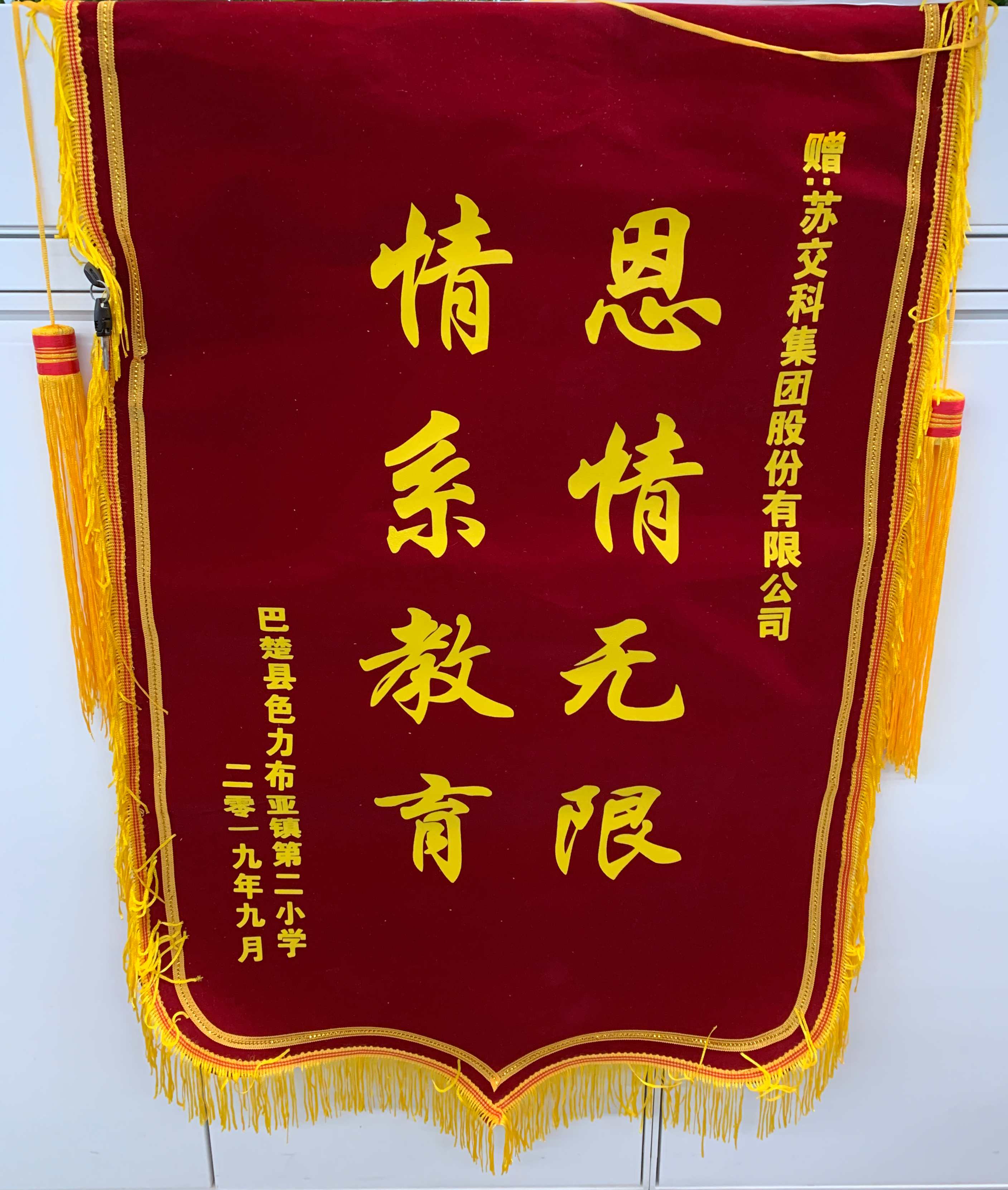 ▲ 来自新疆喀什地区巴楚县色力布亚镇第二小学的锦旗