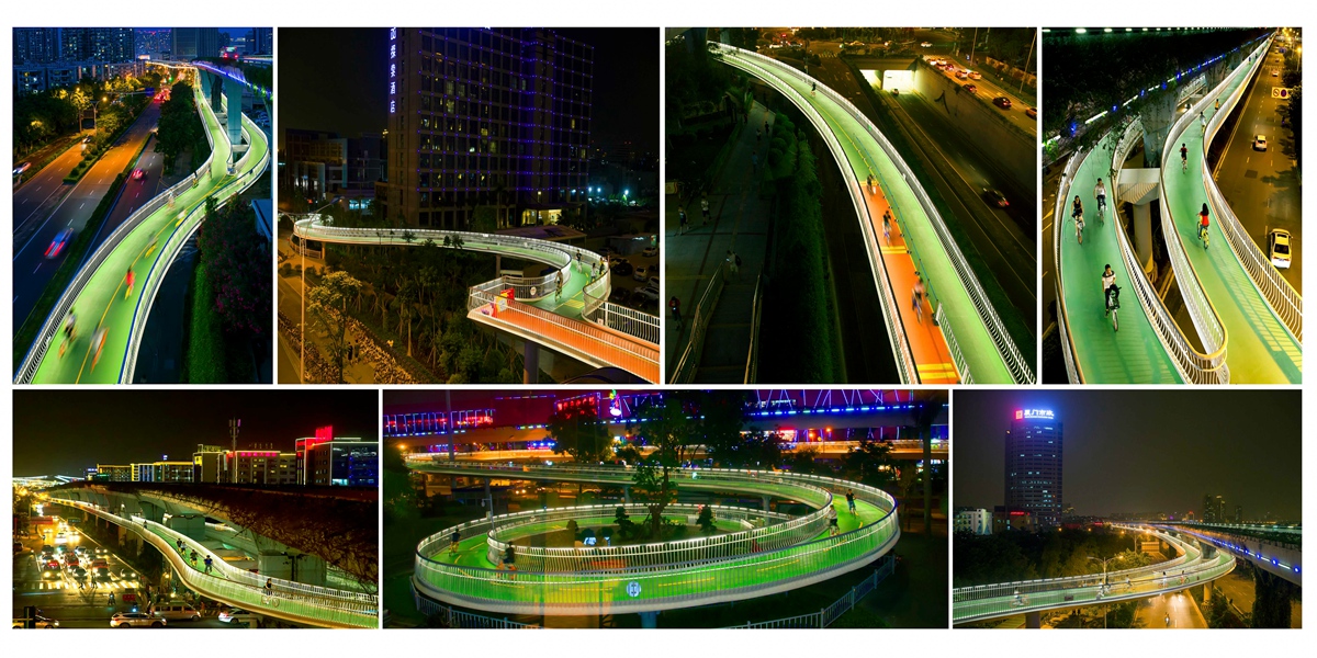 云顶路自行车快速道示范段工程是国内首条、世界最长的自行车高架桥自行车快速路,起点位于厦门BRT洪文站,终点位于BRT县后站,路线全长约7.6km。项目将独立的自行车高架桥布置于现有BRT桥梁下方,实现空间多层次的利用。全线共设置出入口11处,与沿线的BRT站点、地铁站、公交站直接衔接,方便骑行者实现快速换乘。