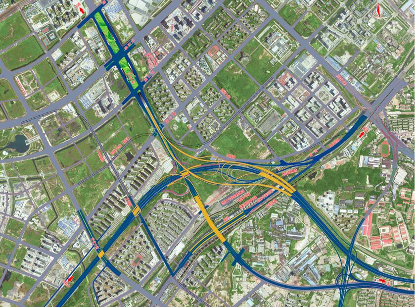 对互通功能进行了分层次梳理,根据功能层级开展互通立交设计,改建后的油坊桥互通拥有17条匝道,可以确保交通出行顺畅。